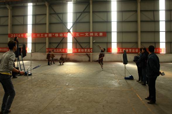 为庆祝五一国际劳动节,丰富物产北川工业园区职工业余文化生活,陶冶职工情操,提高职工整体素质,创建和谐班组,推动企业文化建设,激励全员职工积极投身生产经营和项目建设,推动公司"两提一降"工作,从2014年4月21日开始了物产北川工业园区"移动杯"庆五一文体系列比赛活动。