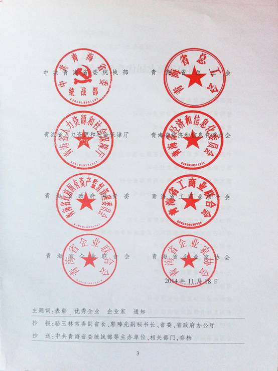 由省委统战部、省总工会等8家单位联合组织开展的"青海省优秀企业、企业家"评选表彰活动,经过多重、严格评审,青海省物产集团总公司荣获"青海省第七届优秀企业"称号。集团及所属各公司将继续发扬成绩、再接再厉,进一步发扬改革创新精神,不断开拓市场,攻坚克难、脚踏实地、真抓实干,为实现物产集团科学稳健发展做出新贡献。
