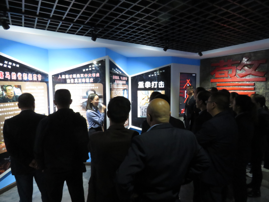 在廉政教育基地,全体党员干部认真聆听讲解员讲解,仔细参观"高瞻远瞩"、"政策法规"、"廉政风范"、"警钟长鸣"、"共建成果"篇和观看"警示教育片"等几个部分的廉政教育内容。警示教育展以实物、图片、文字、影音、雕塑、模拟场景等形式,采用先进的声光电技术等多种演示手段,重点展示了新中国建立以来,党和国家领导人关于党风廉政建设的论述、建党以来的反腐历程和近年来我省反腐倡廉工作成果、查处的"大老虎、苍蝇"、部分贪污腐败大案要案。参观活动中,通过每一个触目惊心的腐败案例、每一幅发人深省的图片和忏悔,以及对典型警示案例和腐败现象的深层剖析,给在场的全体党员干部强烈的视觉冲击和心灵震撼,深刻教育了每一名党员干部,再次警醒党员干部要坚定理想信念,筑牢防腐拒变的思想防线。