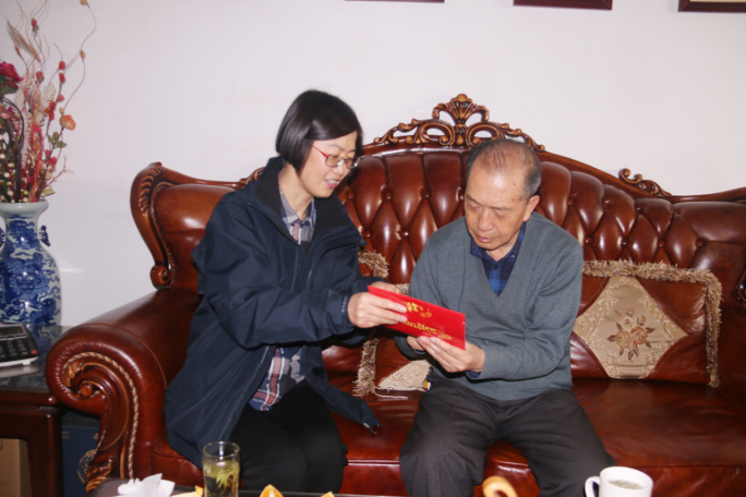 在退休老干部赵承范家中,集团公司党委副书记、总经理刘玲同志与老人促膝交谈,了解老人身体状况和生活情况,向他介绍了集团近年来取得的成绩,同时向老人转达了王玉辉书记的问候和新春祝福,叮嘱他要保重身体,并一如既往地关心、支持物产集团发展。赵承范同志对集团党委的关心与慰问深表感谢。