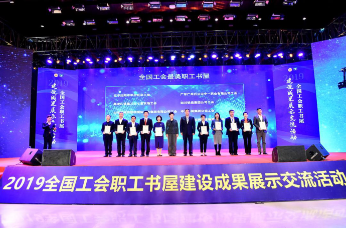 活动现场,全国工会职工书屋建设领导小组发布了"全国工会最美职工书屋"、"与共和国同行"--全国职工主题阅读活动优秀组织单位、全国工会职工书屋"突出贡献工作者"等典型成果,省物产集团党委领导精心打造的省物产集团职工书屋荣获"全国工会最美职工书屋"荣誉称号。