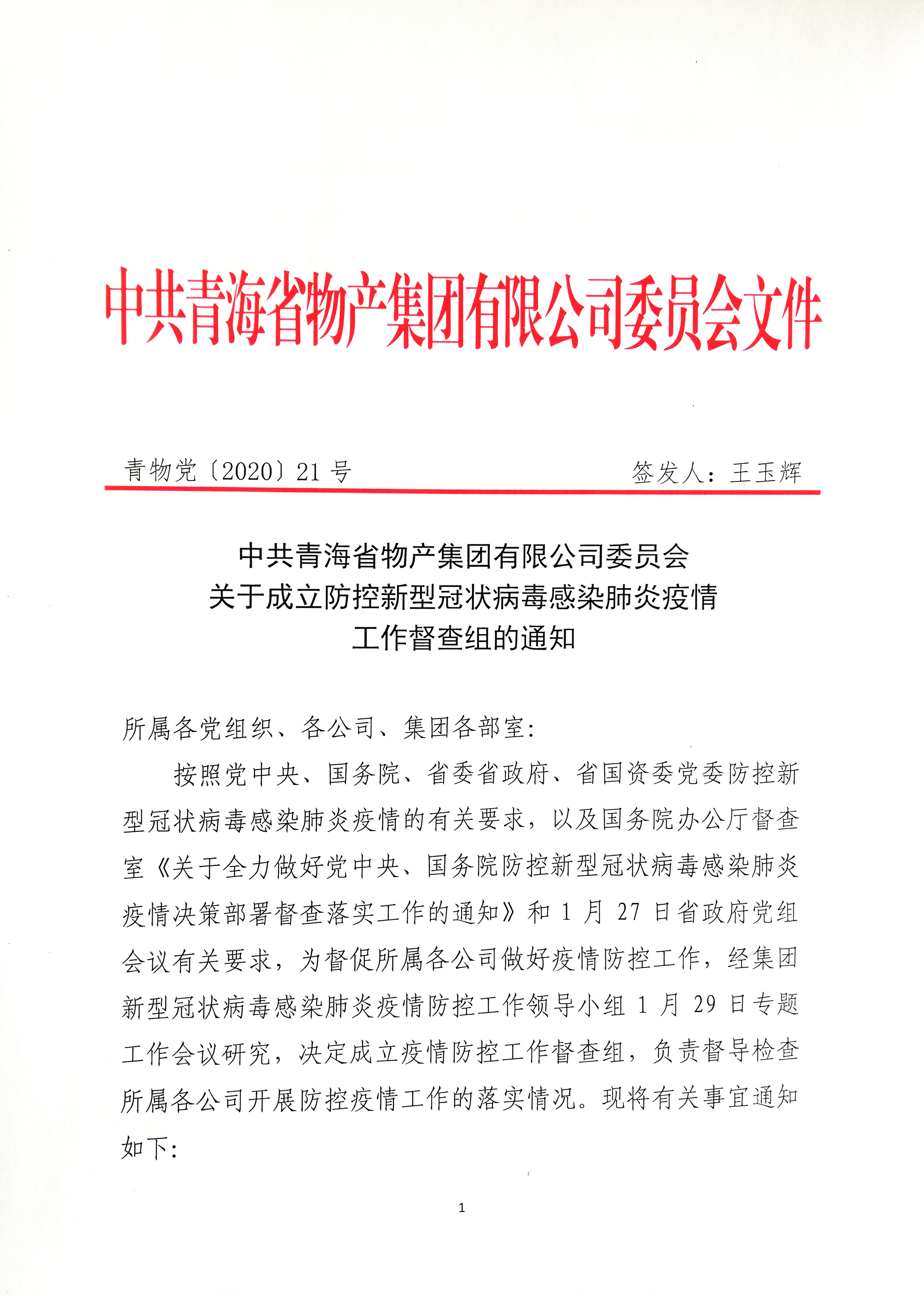 关于成立防控新型冠状病毒感染肺炎疫情工作督查组的通知