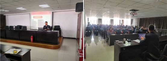 现场授课中,教官以理论概括、数据对比、新闻报道、事故案例、现场解说等方式向参加培训的110名干部职工,讲解近年来发生的多起重大火灾事故及产生原因。触目惊心的画面和数字,使全体人员心灵受到极大震撼,深刻感受到到"隐患险于明火""关注消防、生命至上"的至关重要性。同时,针对物产北川工业物流园消防安全实际情况,教官结合日常工作和生活中的用电、用气、用火常规现象,对发生事故的原因及可能造成的危害进行了系统的解读;传授火灾发生后如何自防自救、如何安全逃生等防护技能。整个培训过程理论联系实际,达到了较好的效果。