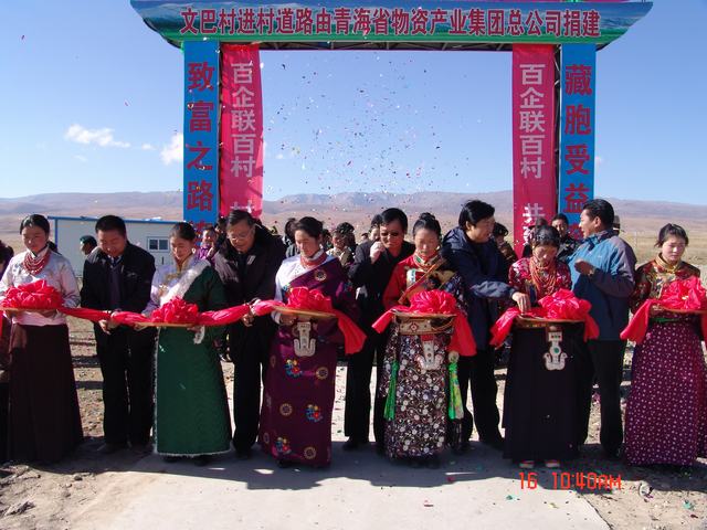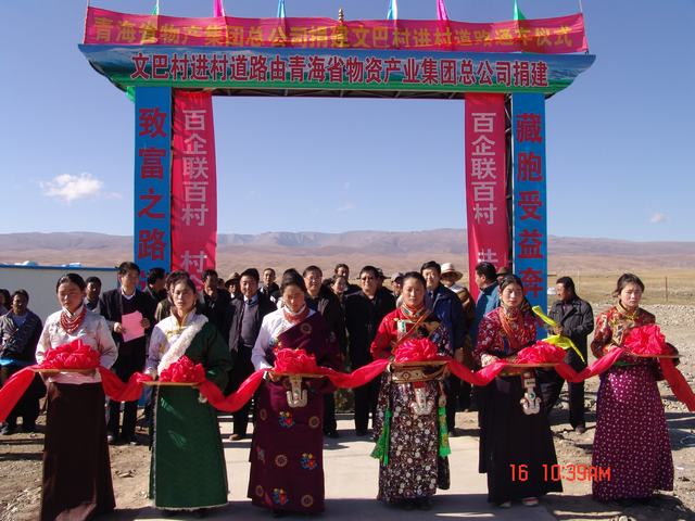 2011年10月16日,集团总公司在共和县江西沟乡元者村举行"百企联百村"捐建共和县江西沟乡元者村党员活动室、科普文化室、医疗卫生室和黑马河乡文巴村进村道路工程项目交接仪式。集团公司总经理王玉辉、党委书记白家林、纪委书记王仁芬、共和县人大常委会主任尕玛才让、共和县委常委、组织部长官却南见以及集团"百企联百村"活动领导小组成员、总部全体职工、捐建工程项目部工作人员、施工方代表和有关县、乡、村领导、村民代表60余人参加交接仪式。