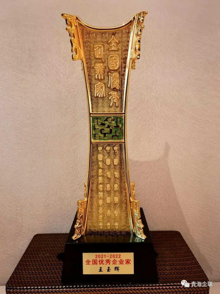 与会领导为青海物产集团党委书记、董事长王玉辉颁发奖杯