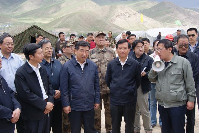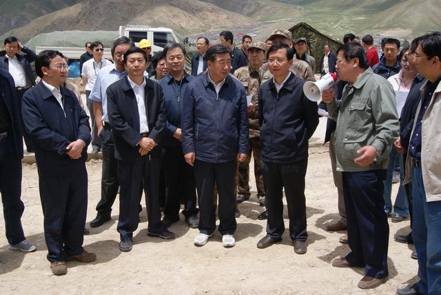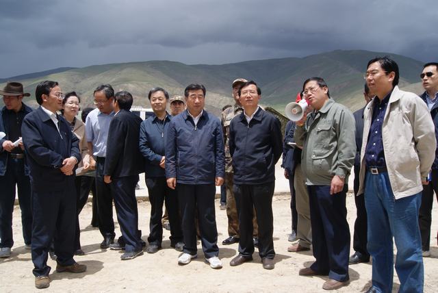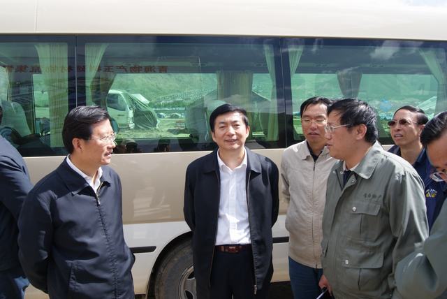 6月19日,中共中央政治局委员、国务院副总理、国务院抗震救灾总指挥部总指挥回良玉率领相关部委领导,在青海省委书记强卫、省长骆惠宁、副省长马顺青的陪同下,来到正在昼夜施工建设的青海物产玉树建材物流集散中心,视察灾后重建物资储备情况和集散中心工程建设情况。集团总经理王玉辉向中央领导和省领导详细汇报了建材物流集散中心建设规模和钢材、水泥、木材三大类物资收储情况。同时表示,青海省物产集团总公司将一如既往,全力以赴支援玉树灾后重建,与各路建设大军一道,为建设美好绿色新玉树贡献力量。听完汇报,回良玉副总理非常高兴,并做出重要指示,要做好统筹组织建材物资的采购和调运工作,努力保障供应,确保质量,降低成本。回良玉副总理及省领导与集团领导、工作人员合影留念。