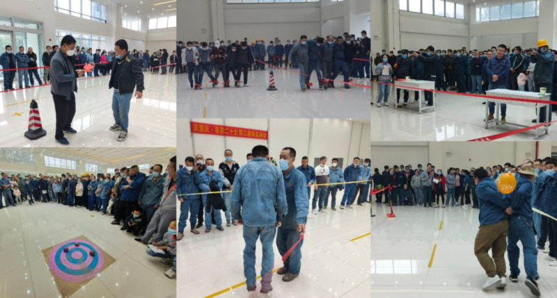 本次趣味运动会以车间、部室为单位,公司工会与团支部设置了“射击打气球、百发百中、一分钟跳绳、齐心协力、乒乓球接力、五人六足”等6个比赛项目。