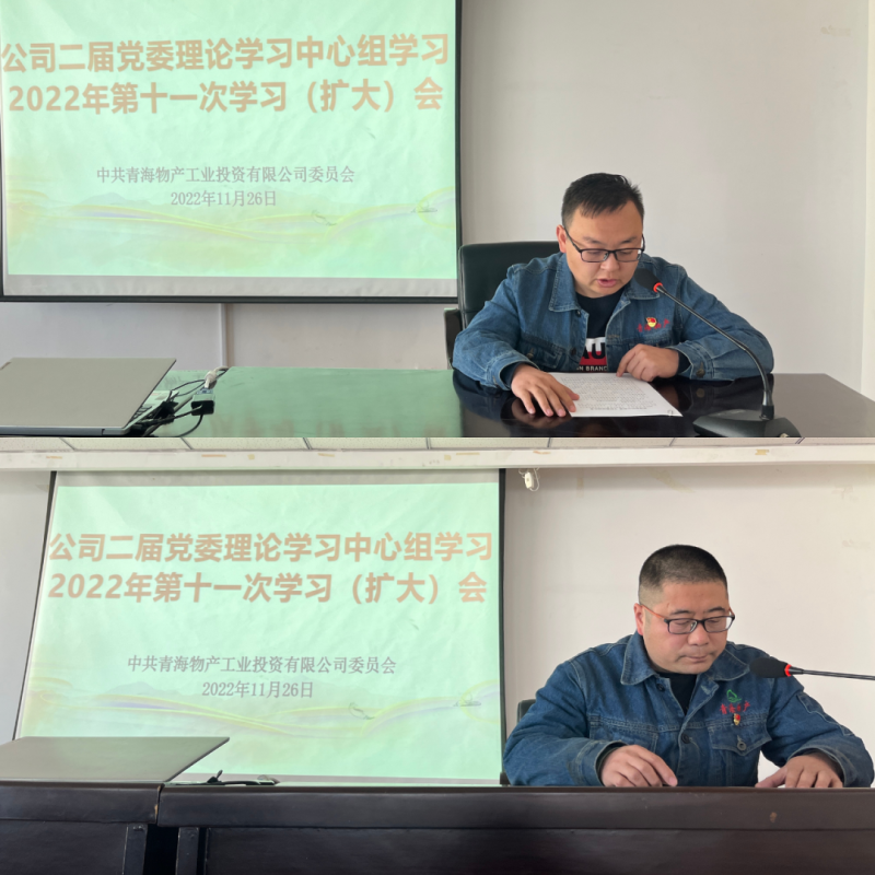 (物产工投公司 讯 陈伦/文 任蕊/摄)11月26日上午,物产工投公司党委在十六楼会议室召开二届党委理论学习中心组学习2022年度第十一次学习(扩大)会。公司党委副书记、总经理王兆明同志主持会议。