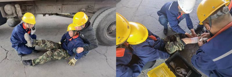 机械伤害是安全生产人身伤亡事故中最常见的事故类型,组织职工开展应急演练,是避免和减少此类事故发生的重要途径。为确保此次演练取得预期效果,配送公司装卸作业部提前制定方案,成立安全小组,明确职责分工,并组织参演人员进行演练前培训,细化各环节步骤。此次演练模拟作业人员在库区作业吊装货物时,因自身麻痹大意导致被货物撞击致伤,造成机械伤害的场景。在警戒组、应急救援组、检查组、后勤保障组等各参演人员的密切协作下,圆满完成了此次演练任务。