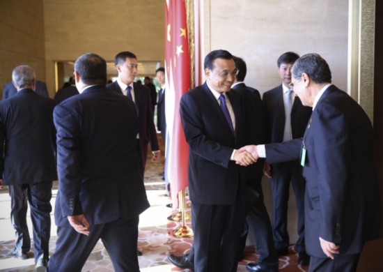 李克强总理会见埃及总统塞西,就对方希望"加强反恐合作"提议表示:"我们既要加强反恐合作,也要妥善解决热点问题,更要高度重视发展经济,以铲除恐怖主义传播的土壤。"