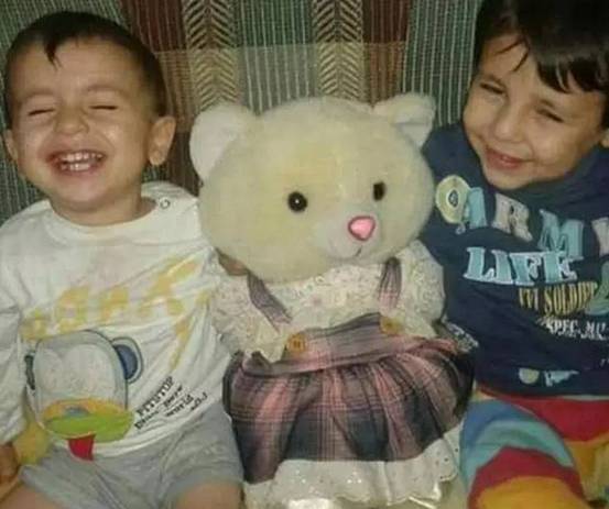 3岁的Aylan(左)和他5岁哥哥Galip(右)的合影