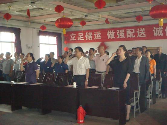 6月29日上午9:00整,公司在四楼会议室举行了新党员入党宣誓和老党员重温入党誓词,董事长、党委书记白国荣主持宣誓。宣誓仪式在雄壮的国歌声中拉开序幕,由安全保卫部四名经警队员组成的党旗护旗队正步步入会场,庄严地托起党旗,64名在岗党员,佩戴党徽,面向党旗,在支部委员杨斌的领誓下,一起庄严地举起了紧握的右拳,广大党员表情肃穆庄重,以铿锵有力的声音表达着对党的忠诚、对党的热爱,铮铮誓词久久回荡在每一位党员心中。